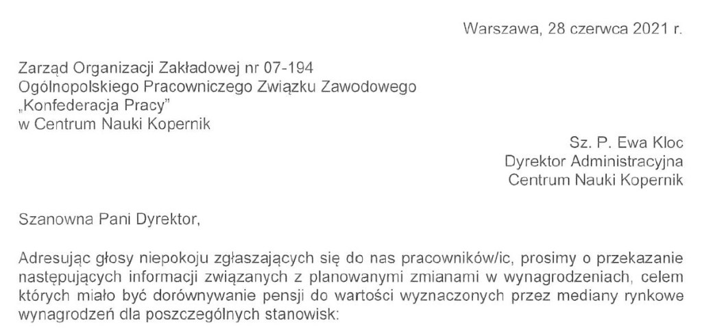 Pojawia się jednak szereg wątpliwości, z którymi zgłaszają się do zarządu Związku pracownicy/ce, i o których można słyszeć w rozmowach wewnątrz zespołów. Po konsultacji w gronie Związku, napisaliśmy pismo do dyrektor Ewy Kloc, tak aby przynajmniej część z tych wątpliwości rozwiać. Pełną treść pisma znajdziesz tutaj. A poniżej przedstawiamy konkretnie, o co w piśmie pytaliśmy.