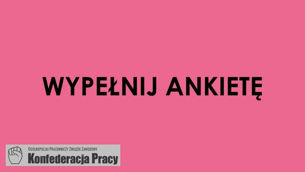 Informacja dodatkowa: Jako, że chcemy sie upewnić co do wiarygodności wpisywanych danych, ankieta NIE jest anonimowa (pytamy o adres e-mail). W żadnym jednak wypadku, nie udostępnimy informacji mogących wskazywać na Ciebie, pracodawcy czy osobom postronnym. Surowe wyniki ankiety będą przetwarzane tylko i wyłącznie przez zarząd Organizacji Zakładowej 07-194 OPZZ „Konfederacji Pracy” (czyli naszego Związku), a publikacji podlegać będą tylko zanonimizowane wyniki ankiety. Zasady przetwarzania Twoich danych znajdziesz tutaj.