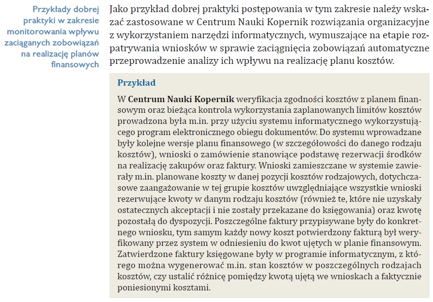 W opracowanym dla szerszego grona czytelniczego raporcie, NIK stawia system weryfikacji wniosków finansowych i katalogowania faktur w CNK jako przykład do naśladowania przez inne instytucje: